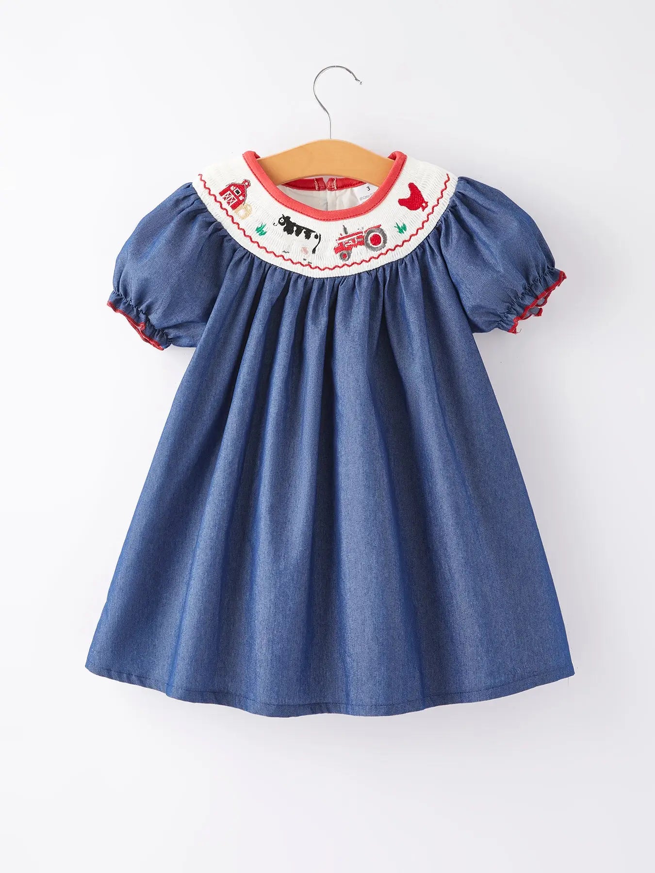 Bring the charm of the countryside to your little girl's wardrobe with our Girls Farm Smocking Embroidered Blue Dress! Featuring delicate smocking and beautiful embroidery, this dress is perfect for any occasion!